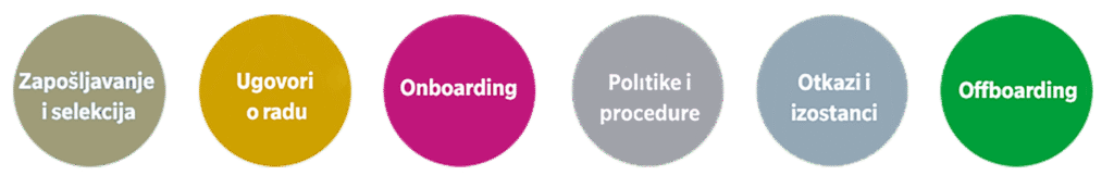 - U fazi odlaska posebnu pozornost treba obratiti na primopredaju svih alata za rad zaposlenika, ali i na oduzimanje prava pristupa korištenim softverskim aplikacijama. Zadaci svake odgovorne osobe označeni su u elektroničkom toku odlaska s automatskim informacijama i obavijestima.